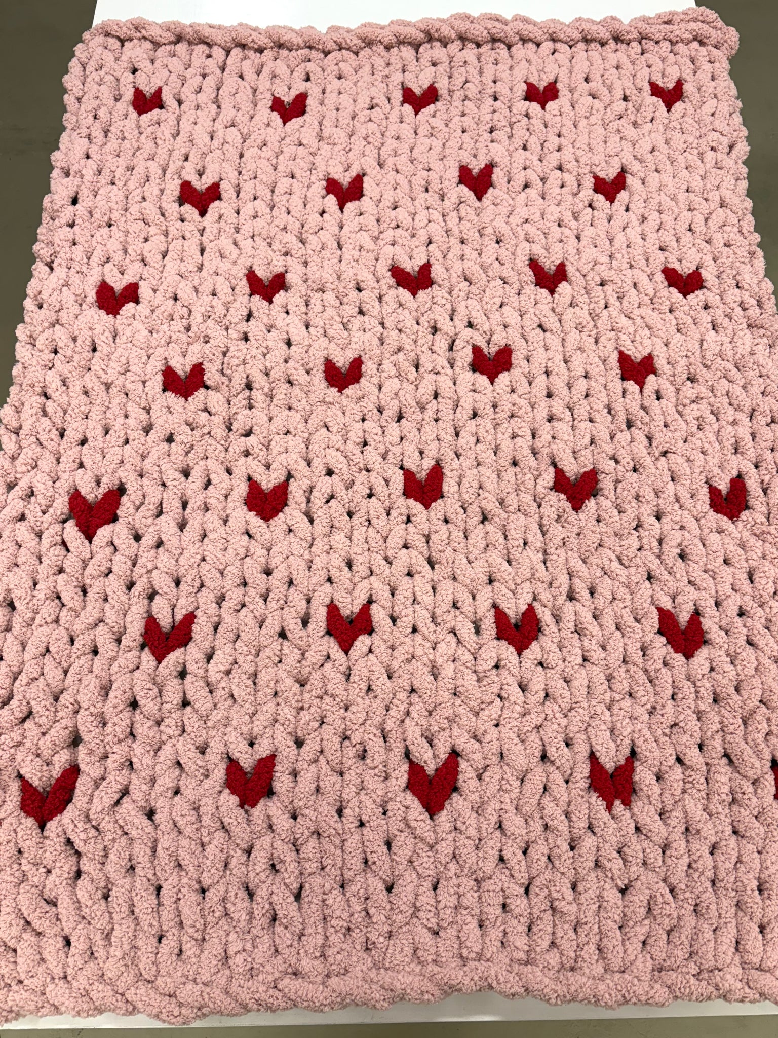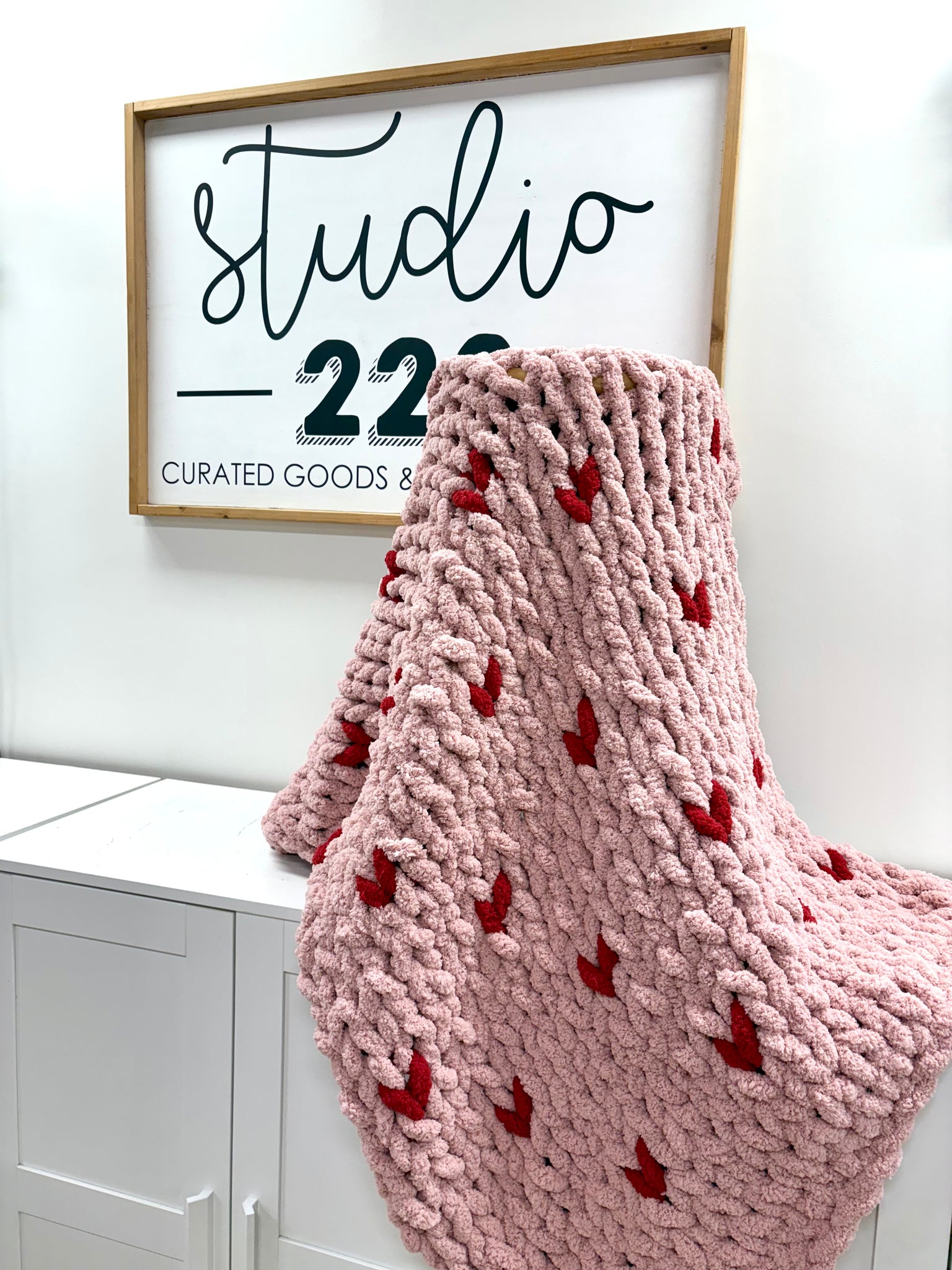 Learn the art of finger knitting and create a beautiful chunky blanket with a twist! In this all new class, we will teach you how to create a chunky knit blanket with little hearts embedded in the blanket. Or if you choose, you can pick a solid color instead! No previous knitting experience is required as we will teach you step by step how to knit with only your fingers.